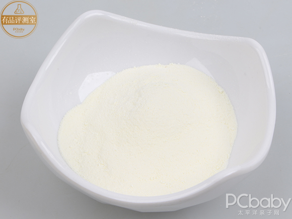 在组织形态和冲调性上,粉质细腻色泽均一,冲调后,奶液表面有较多泡沫且有一点点挂壁,溶解性一般。